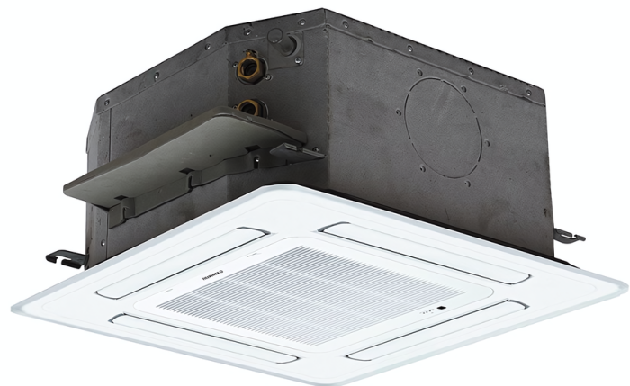 Серия KQZE – кассетные фанкойлы представлены 4 моделями производительностью от 2.5 до 3.5 кВт. Они подходят для установки в пространство за подвесным потолком и снабжены декоративной панелью KPU65-C. Дополнительно фанкойл может быть укомплектован 3-ходовым вентилем KQV22, комплектом трубной обвязки KQP21-Z1, дренажным поддоном KFD-Z.