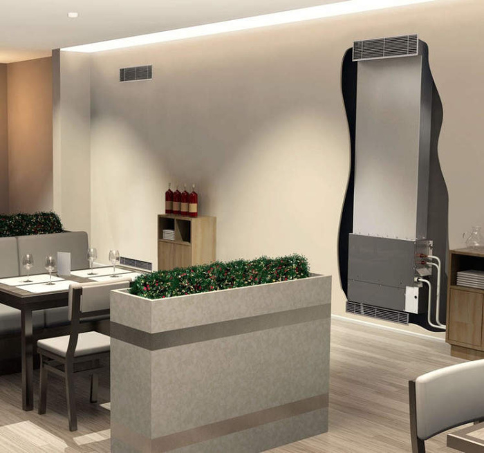 - Кондиционеры идеальны для применения в офисах, магазинах и жилых помещениях. Легко вписываются в любой интерьер: видны только декоративные решетки