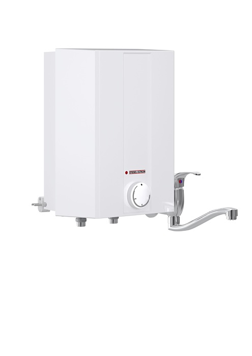 Накопительный водонагреватель Stiebel Eltron (Штибель-Элтрон) ESH 5 O-N Trend + A рассчитан на нагрев 5 л воды, подключение к водопроводу в нижней части, а в комплектации присутствует кран. Монтируется прибор легко и просто на стене, не захватывая для себя много места. Индикатор сообщит, что прибор включен при его подключении к сети электроснабжения.